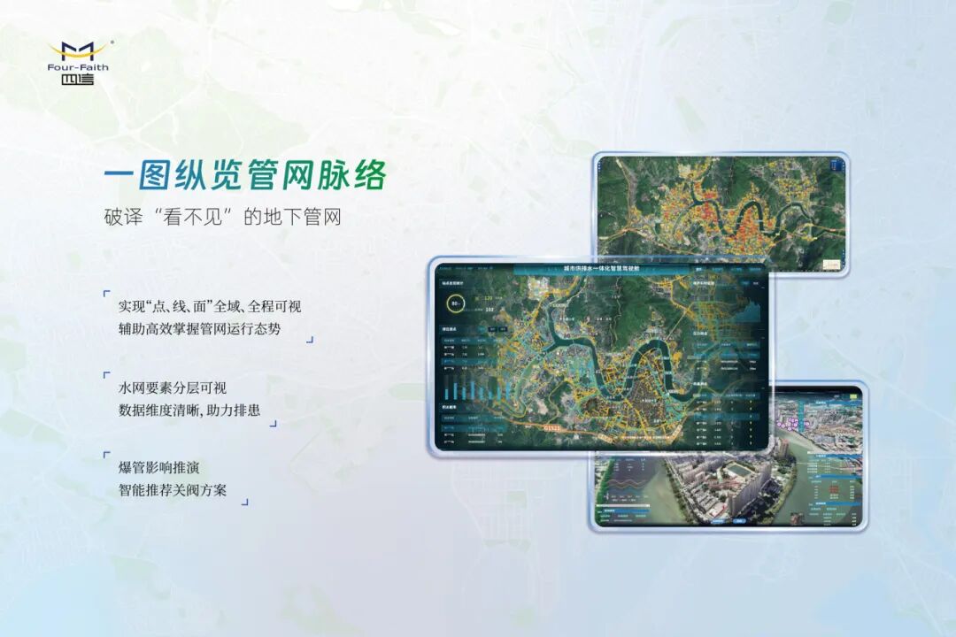 以基础地理信息、三维模型数据、实时感知数据、运维管理数据等多源数据为核心,融合地理信息系统(GIS)和三维建模应用,精准呈现城市地下各类供排水管网控件布局和属性,精确还原城市水务系统的运行状态。