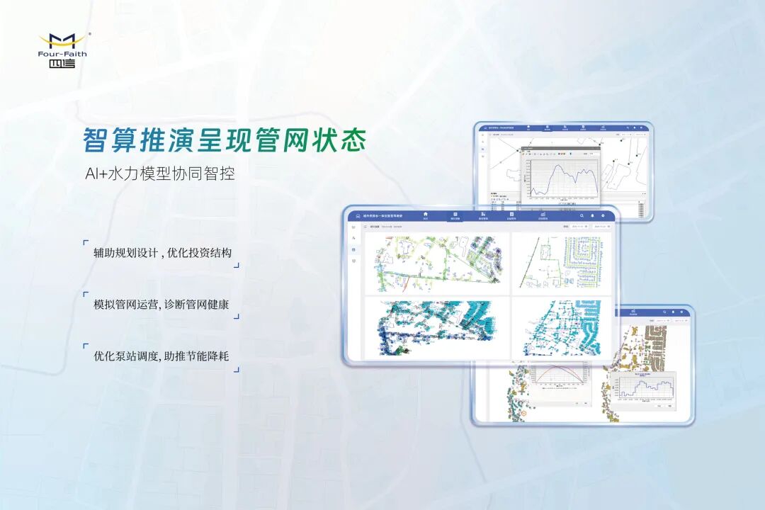 结合水力模型、统计模型、AI技术进行数据分析和仿真,为城市管网智慧运营可持续发展提供坚实支持,辅助管理者科学决策。