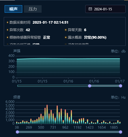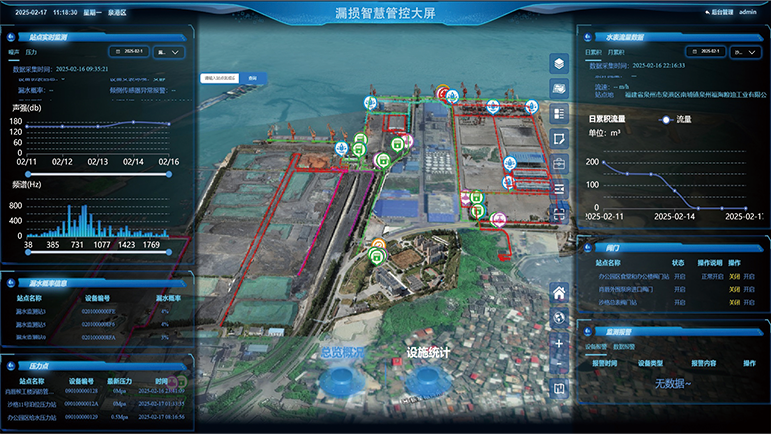精准感知 快速定位:部署四信自研智能检漏产品——听漏仪与水听器,全天候监测主干管网,融合AI算法和大数据技术,对管网漏损噪声进行智能分析,精准识别异常频谱,快速锁定漏损范围,让漏损隐患无处遁形。